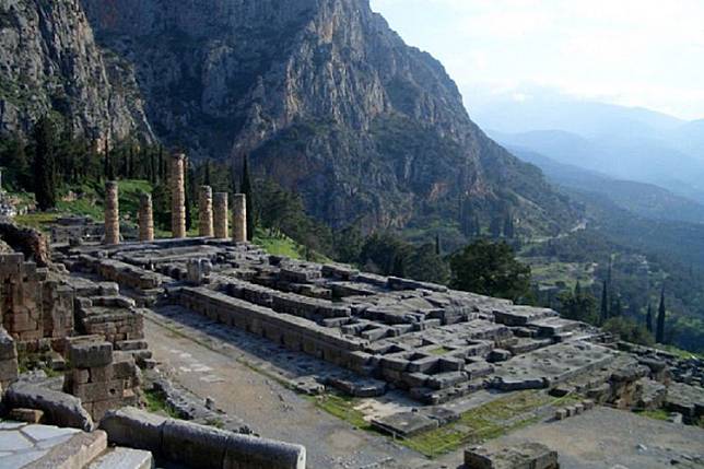 Hal tersebut tampak pada kuil yang berada di Delphi. Sesudah bangunan suci itu hancur karena gempa bumi pada 373 SM, orang-orang Yunani Kuno membangunnya kembali di tempat yang serupa.
